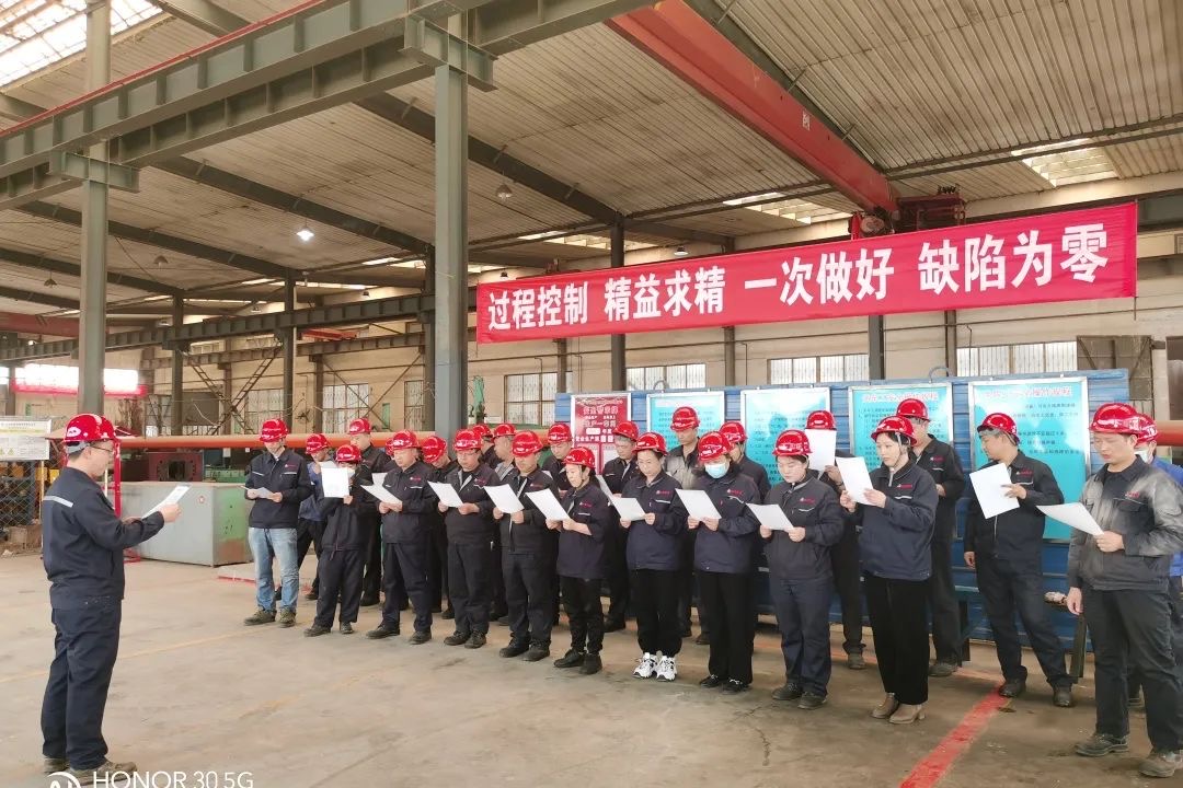 各部門及車間積極響應(yīng)號召,通過各種形式,開展對員工的質(zhì)量培訓(xùn)。在廠區(qū)顯著位置懸掛橫幅和標(biāo)語。并利用班前班后會進(jìn)行宣傳,組織員工學(xué)習(xí)《質(zhì)量管理辦法》及有關(guān)質(zhì)量制度、質(zhì)量法規(guī),營造“人人關(guān)心質(zhì)量、人人重視質(zhì)量”的氛圍,牢記我公司嚴(yán)、細(xì)、精、誠的質(zhì)量方針。每位員工也作了質(zhì)量宣誓,鄭重地表達(dá)自己對質(zhì)量的態(tài)度和對本次活動的重視。